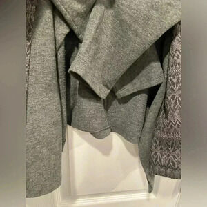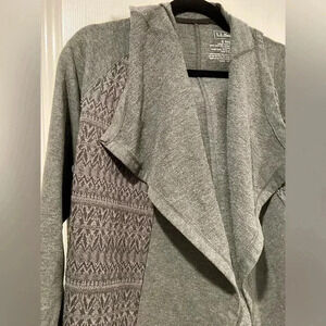 L.L. Bean Gray Flowy Open Hooded Cardigan Argyle Side Panels Pockets Size Small