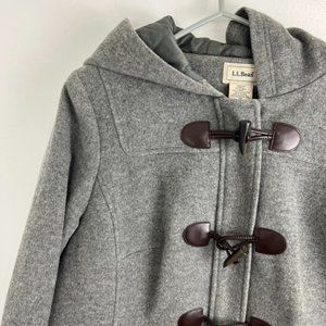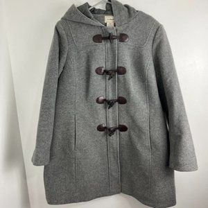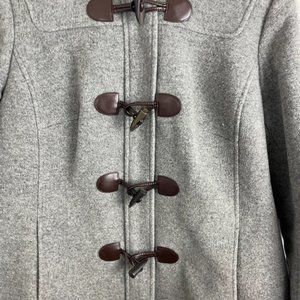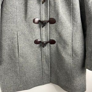 Stylish gray ski jacket with toggle closures. Warm and comfortable. Perfect for winter sports.