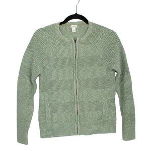LL Bean Green 100% Cotton Knit Zip Front Cardigan Sweater Size S