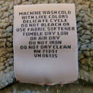 High collared green fleece jacket. 22" long. Sleeves are 23" and it measures 20" across the chest. It features faux bone buttons and is in excellent condition.