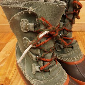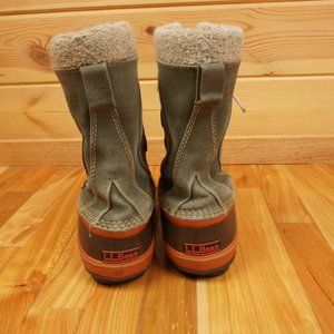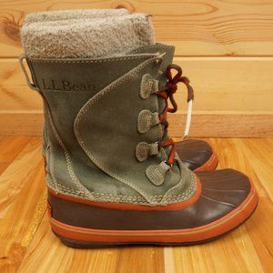 LL Bean Green Gray Suede Insulated Felt Lined Waterproof Boots Size 6