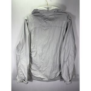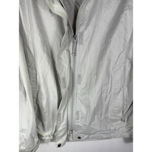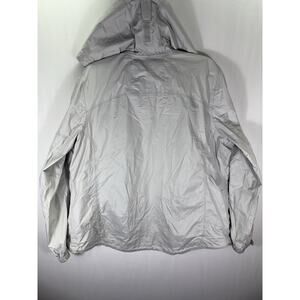 The LL Bean Green Hooded Rain Jacket Windbreaker in Women's XL is a versatile and practical outerwear option for casual travel. Made from durable nylon with a solid white color, this short windbreaker features a full zip closure, adjustable hood, and inner and zipped pockets for added convenience. The lightweight and packable design make it suitable for all seasons, providing protection from wind and rain while remaining stylish. This classic L.L. Bean jacket is a must-have for any wardrobe, offering comfort and functionality in a plus size fit.