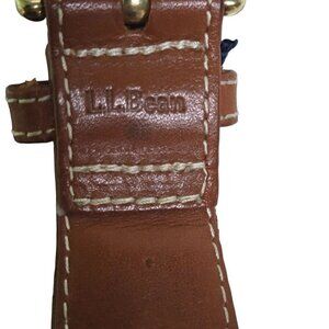 L.L. Bean Green Plaid Brown Leather Men's Belt Navy Trim Brass Buckle Size 45