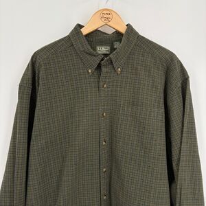 LL Bean Green Plaid Cotton Long Sleeve Button Down Shirt XL-Tall