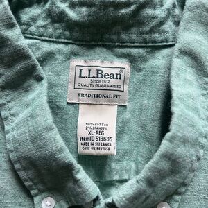 LL Bean Green Short Sleeve Button Down Shirt Mens XL Traditional Fit Casual Top