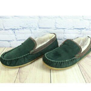 LL Bean Green Suede Wicked Good Shearling Lined Venetian Slippers Size 11 M