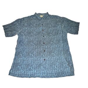 LL Bean Hawaiian Shirt Men's L-Reg Blue Abstract Print S/S Button Front Collared