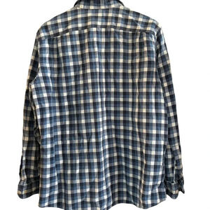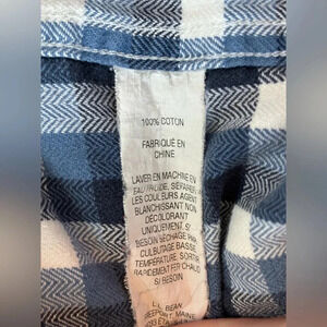 LL Bean Heavy Flannel Blue White Plaid Long Sleeve Button Down Size Large