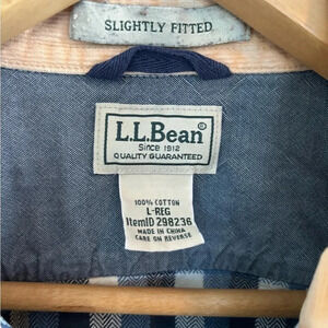 L.L. Bean Heavy Flannel Blue White Plaid Long Sleeve Button Down Size Regular Large - Slightly Fitted