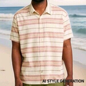 LL Bean Hemp Blend Backyard BBQ Shirt Neutral Tones SS Untucked Length Men’s L