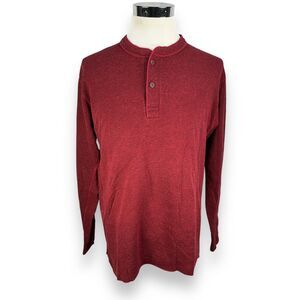 L.L.Bean Henley Sweatshirt Men’s Large Maroon Cotton Long Sleeve Traditional Fit