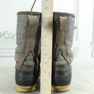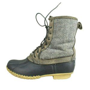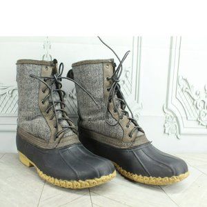 LL Bean Herringbone Gray Canvas Shearling Lined Mid Calf Duck Boots Size 10 M