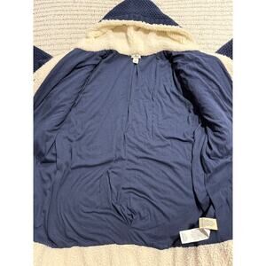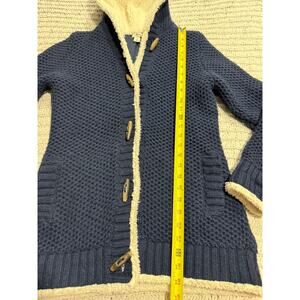 LL Bean Hooded Sweater Sherpa Button Wool Blend 290407 Women's Size Small Blue White Lined