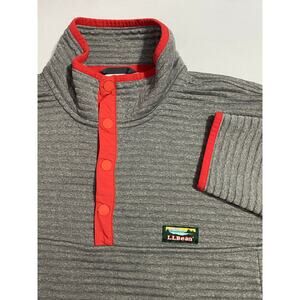 LL Bean men’s hoodie jacket in grey ribbed fleece. Tagged Size XL Regular. Features full zip front, soft fleece construction, ribbed texture, and classic LL Bean outdoor styling. Comfortable layering piece for cool weather, casual wear, or outdoor activities. Durable LL Bean quality with timeless design, perfect for vintage drops or outdoor gear bundles.