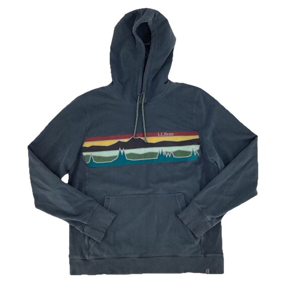 LL Bean Hoodie Mens Slightly Fitted Mountain Graphic Pullover Sweater Blue Sz M