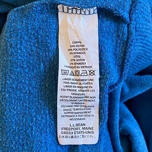 In EUC, here is a Cozy Pullover sweatshirt by L.L. Bean in what I *believe* is the color "Marine Blue Heather," but be aware that there were lots of colors for this sweatshirt over time so I could be wrong. No holes, tears or stains, in perfect shape. This is a step up/classier than your average sweatshirt. By typing "290312" into the search box on L.L.Bean's website, you can still get most of the info. This sweatshirt's size is labeled "S REG MISSES" - the sizing chart on L.L. Bean's website, under Women's Tops, reads, "Please note: Misses' is now called Regular, Women's is now Plus..." So the ones that are labeled MISSES are probably the originals/older because using the Wayback Machine, that note is present as early as mid-2020, and possibly earlier but I couldn't access it.