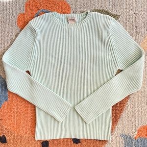 L.L. Bean I Light Mint Green Pastel Ribbed Crewneck Pullover