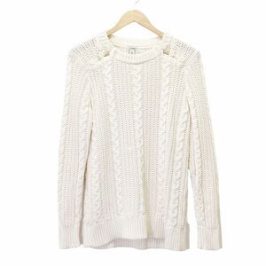 L.L. Bean Ivory Cable Knit Sweater Button Shoulder Pullover Women’s Size Medium