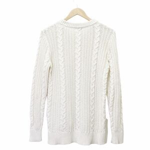 LL Bean Ivory Cable Knit Sweater Button Shoulder Fisherman Pullover Size Medium