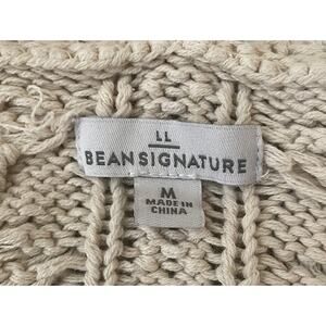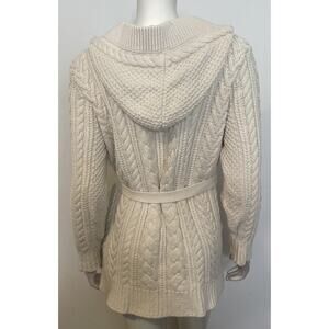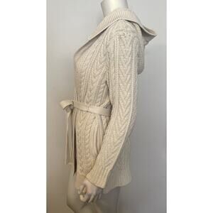 LL Bean Ivory Chunky Knit Belted Hooded LS Cardigan Sweater