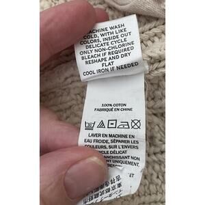 LL Bean Ivory Cotton Belted Cardigan Womens M LS Pockets Hood