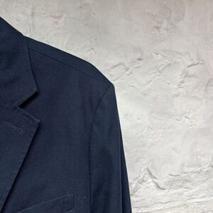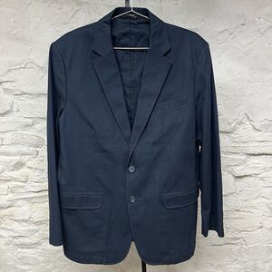 LL Bean Jacket Blue Canvas Cotton Sport Coat Blazer Elbow Patches Navy School