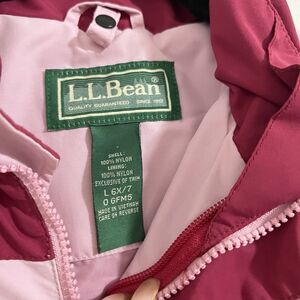 LL Bean Jacket Girls Large 6X / 7 Pink Winter Nylon Outdoor Hooded Windbreaker