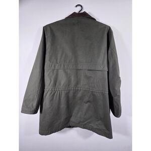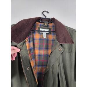 LL Bean Jacket Green Barn Field Coat Corduroy Collar Flannel Lined Men's L T