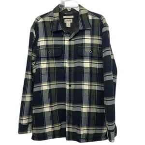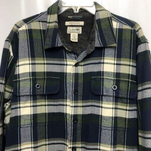 LL Bean Jacket Mens Large Blue Green Plaid Fleece Lined Flannel Shacket Shirt 298189. Pre owned excellent condition.