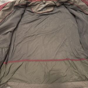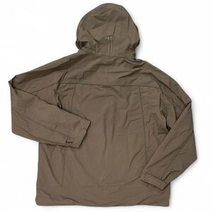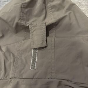 Design: Full-zip front with snap storm flap; attached hood; mesh-lined interior for breathability