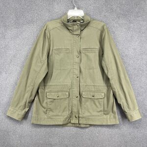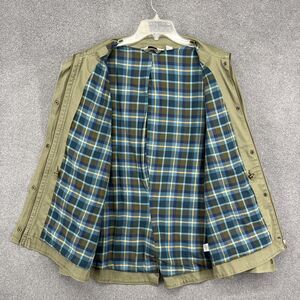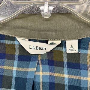 LL Bean Jacket Mens Large Green Utility Field Coat Plaid Lined Cotton Outdoor