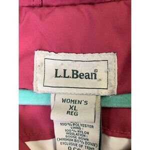 The L.L. Bean Jacket is a stylish and practical choice for cold winter days in a woman's size XL. Made with a polyester outer shell and filled with cozy pink goose down insulation, this mid-length puffer jacket is perfect for staying warm and comfortable during outdoor activities or everyday wear. The jacket features a full zip closure with snaps, long sleeves, and a nylon lining, making it easy to care for with machine washable fabric. Add a pop of color to your winter wardrobe with this classic pink jacket from L.L. Bean.