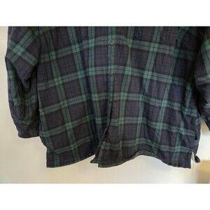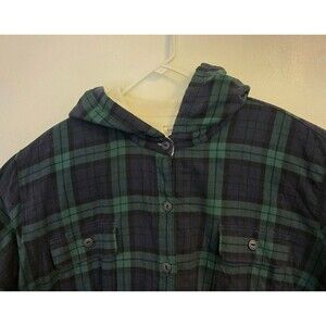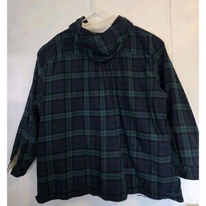LL Bean Jacket Womens 3X Fleece Lined Shirt Hooded Button Up Green Plaid Shacket