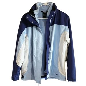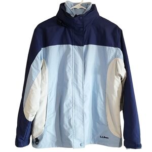 L.L. Bean Jacket Womens Blue White M Fleece Winter Rain Lined Full Zipped Coat