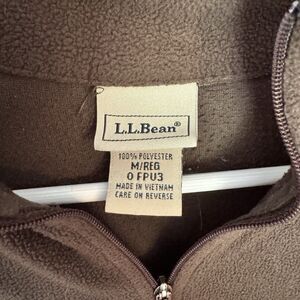 This LL Bean women's brown fleece jacket is a versatile and stylish outerwear option for outdoor activities. Made from polyester with a cozy fleece fabric type, this medium-sized sweater features a 1/4 zip closure and long sleeves, making it ideal for layering in various seasons. Its mid-length design and solid brown color make it suitable for travel, casual outings, and workwear. The jacket's lightweight feature adds ease of movement, while its classic LL Bean brand and outdoor theme give it a timeless appeal for any wardrobe.