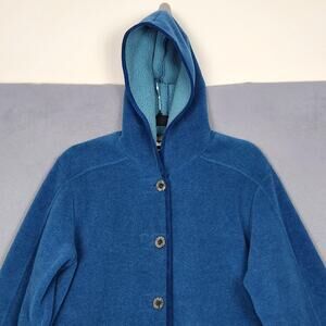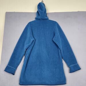 LL Bean Jacket Womens Medium Blue Hooded Button Front Fleece Coat Made USA