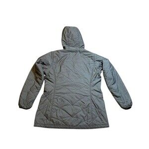 This LL Bean Jacket is a women's size large insulated quilted parka, perfect for outdoor activities in winter, fall, and spring. The mid-length jacket features a solid gray color with a polyester outer shell and lining material. It has long sleeves with a zip closure, zipped pockets, and is machine washable for easy care. The lightweight design and classic style make it ideal for travel, casual outings, or workwear, while the quilted accents add a touch of preppy flair to the overall look. Made by the trusted brand L.L. Bean, this jacket offers both style and functionality for the modern woman.