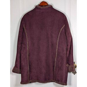 LL Bean Jacket Womens XL Petite Purple Button Sherpa Lined Chore Faux Suede Coat