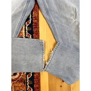 L.L. Bean Jeans light wash baggy small spots, pictured repaired crotch cotton tag size 34x32 waist measures 33"