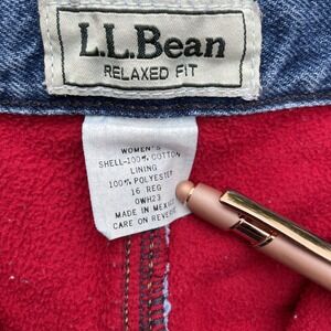 LL Bean Jeans Womens 16 Regular Blue Denim Red Fleece Lined Relax Fit High Rise