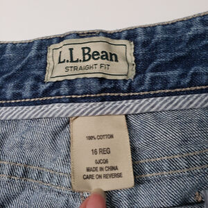Blue L.L. Bean Straight Fit Denim Jeans Distressed Womens 16