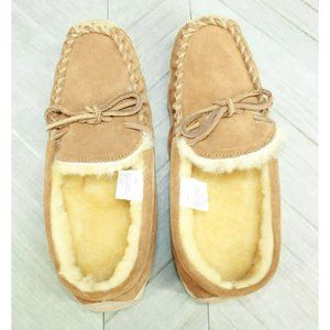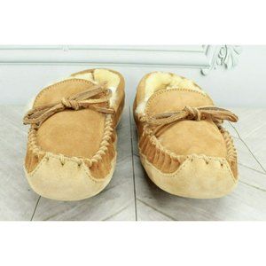 LL Bean Kids Brown Suede Wicked Good Shearling Lined Moccasin Slipper Size 6
