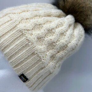 This cozy hat with fun stripes is topped with a stylish faux fur pom and dressed up with knit cables. Inside, the supersoft plush lining adds nonstop warmth and comfort.