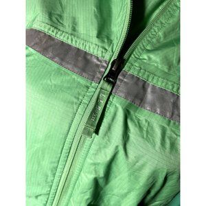 Features: zipper front closure, reflective tape, front pocket, hood.