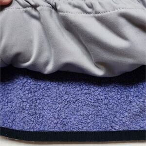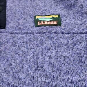 L.L. Bean Kids Sweater Fleece Pullover, size M (10-12), purple with navy edging, having a hard time getting exact shade, front kangaroo pocket, elastic binding on cuffs and hem, quarter snap placket, very good condition.