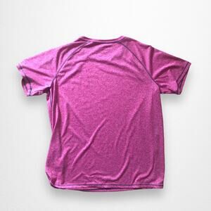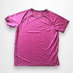 Pink LL Bean kids' Trail Tee in excellent, like new condition. Size XL (18). Soft, moisture-wicking 50% recycled polyester and 50% polyester. Anti-microbial and machine washable- resists odor and ensures comfort. Rosy heathered pink with dark gray stitching. Slightly fitted.