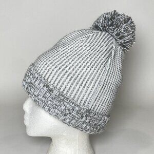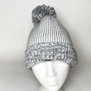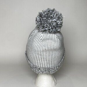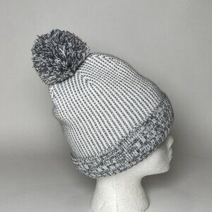 LL Bean Knit Beanie Pom Pom Hat Cap Gray Striped Lined One Size Fits All