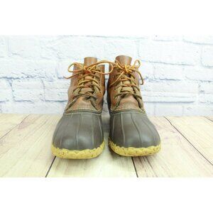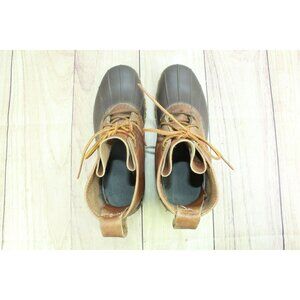 LL Bean Lace Up Unlined Ankle Duck Boots Brown Leather Round Toe Size 8 M