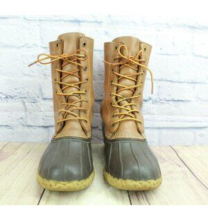 LL Bean Lace Up Unlined Mid Calf Duck Boots Brown Leather Round Toe Size 8 M