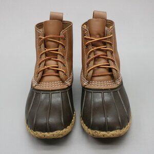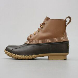 LL Bean Ladies 7 Tan Leather Brown Rubber Short Ankle Duck Boots USA Maine 06009